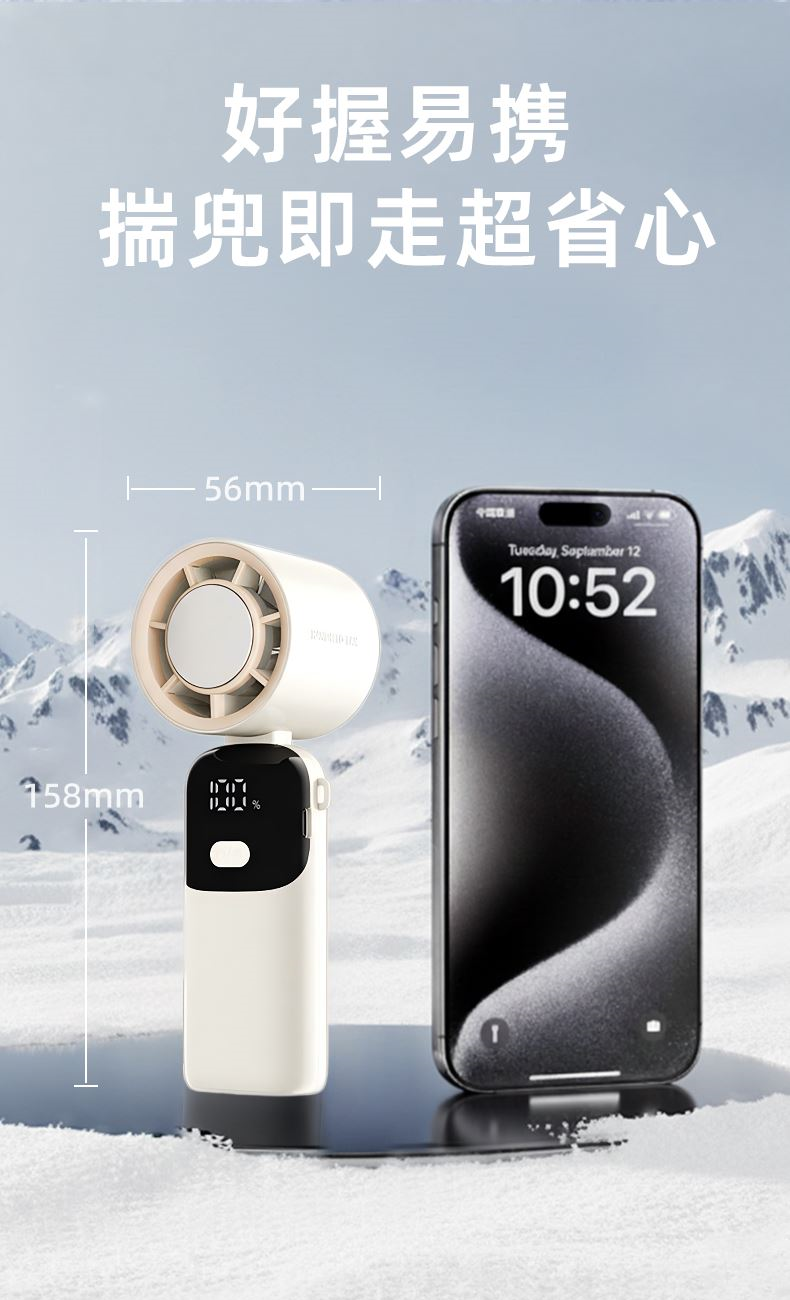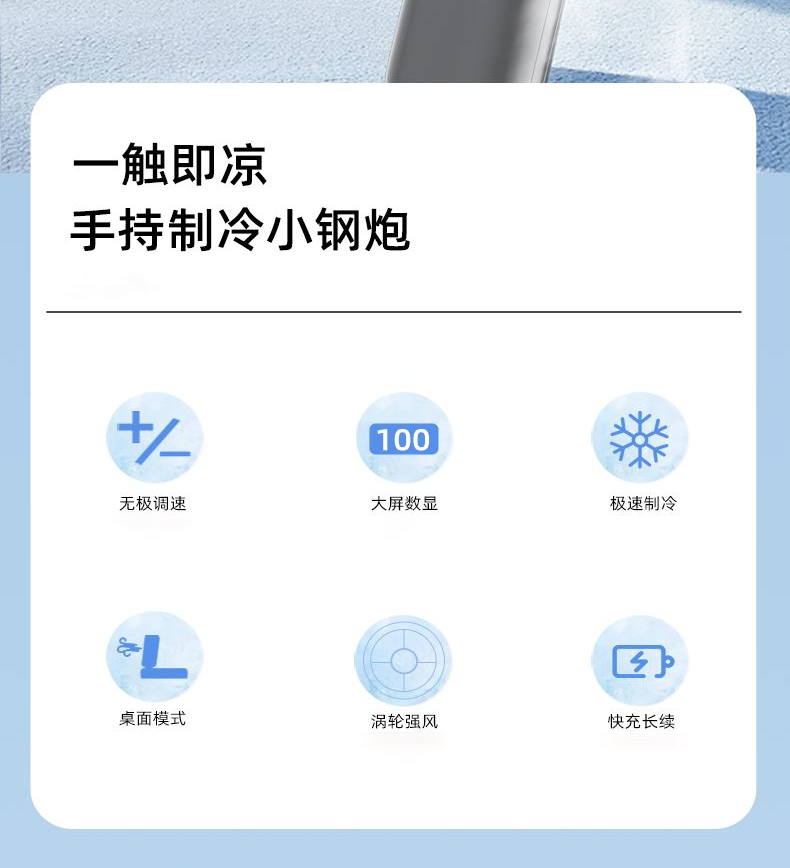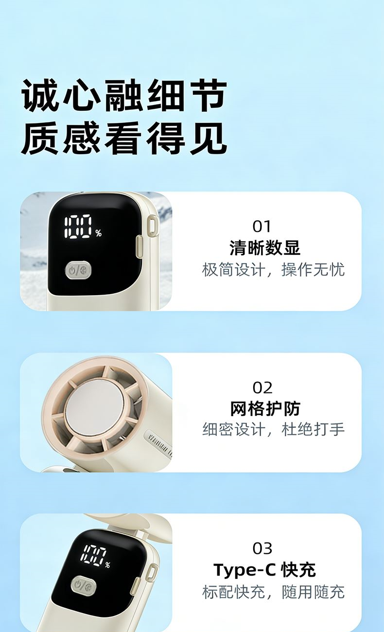 電池容量:2400mAh 續(xù)航時(shí)間:約3-12H 充電時(shí)間:2.5H 工作模式:100檔無(wú)極調(diào)速+五檔快捷 輸 入:TYPE-C 5/V2A 電 機(jī):無(wú)刷電機(jī) 產(chǎn)品材質(zhì):ABS+電子元器件 顏 色:米白色 電機(jī)轉(zhuǎn)速:10500轉(zhuǎn),產(chǎn)品風(fēng)量100檔可調(diào),半導(dǎo)體制冷,可折疊高顏值,大風(fēng)力,長(zhǎng)續(xù)航,2400mAh大容量電池,超大風(fēng) 無(wú)級(jí)變速 靜音 渦輪增壓出風(fēng)設(shè)計(jì),續(xù)航快充,雙頂配,TYPE-C接口快速充電。