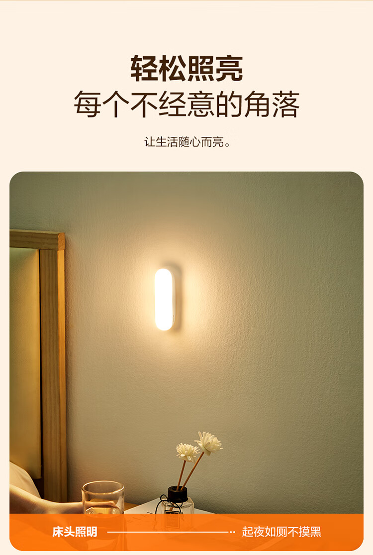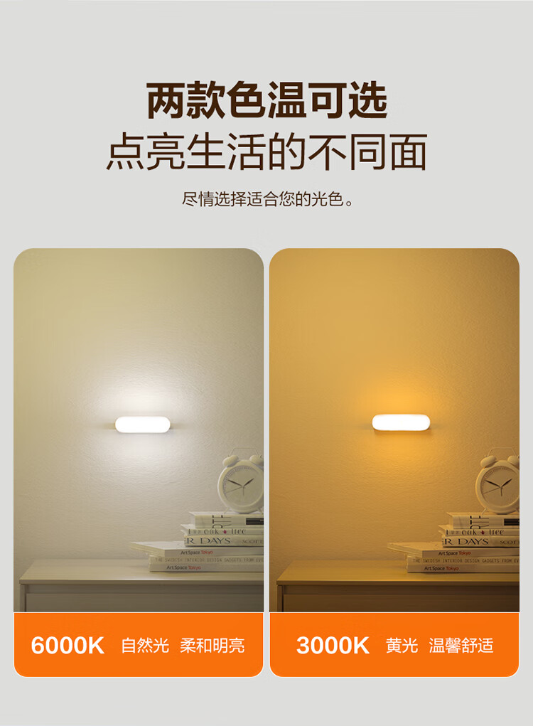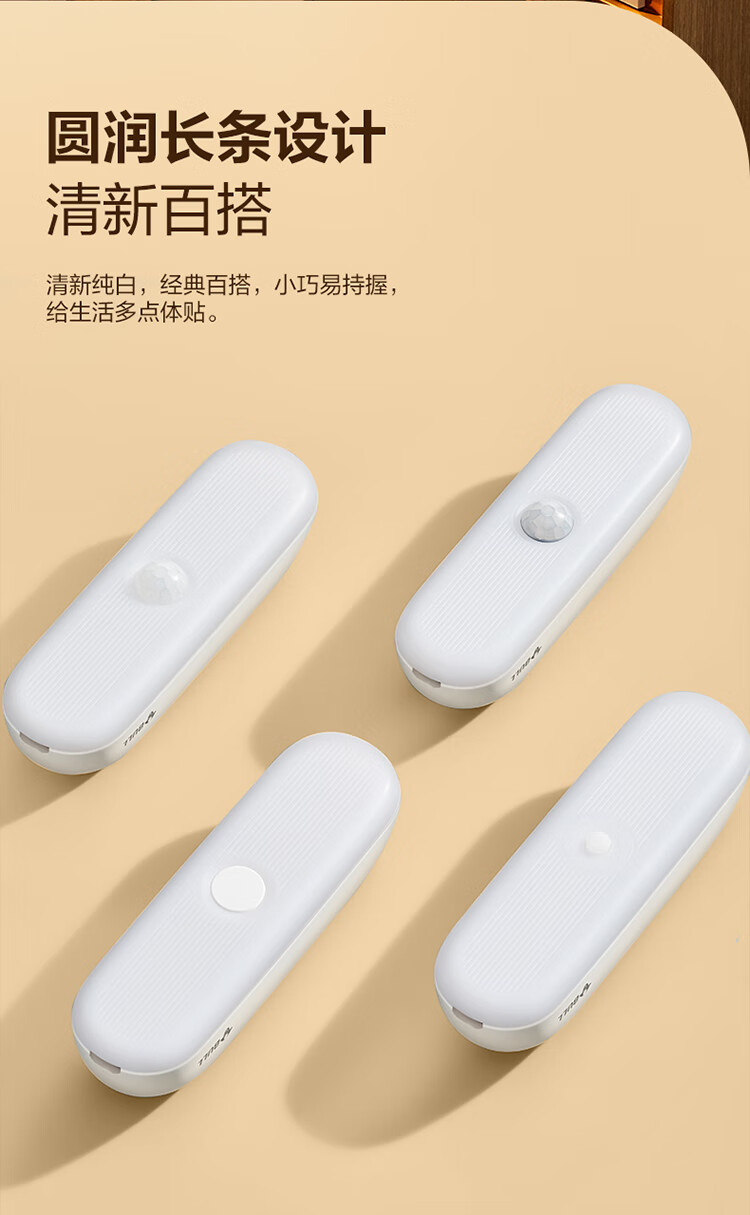 賣點: 1.兩款色溫可選 點亮生活的不同面 盡情選擇適合您的光色。 2.兩種安裝方式 隨心選擇免打孔,免布線,輕松裝取,使用便捷。 3.圓潤長條設(shè)計 清新百搭清新純白,經(jīng)典百搭,小巧易持握,給生活多點體貼。 4.無""線""牽絆 使用自由可吸可貼可手持,可固定照明,