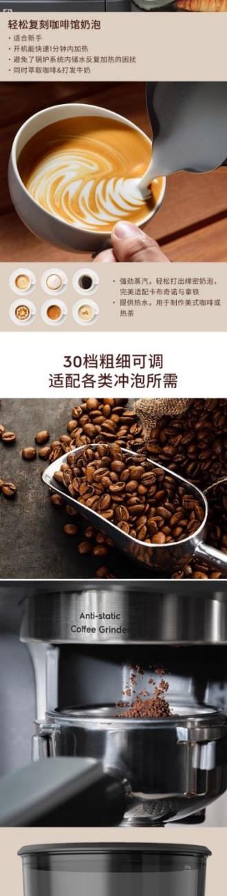 瑞典原創(chuàng)設(shè)計(jì),榮獲2024 德國(guó)iF設(shè)計(jì)獎(jiǎng)︱等離子防靜電研磨技術(shù)︱250g豆倉(cāng)︱30檔研磨調(diào)節(jié)︱單杯/雙杯/自定義︱雙加熱模塊系統(tǒng)︱PID溫控系統(tǒng)︱58mm商用級(jí)沖煮頭︱蕞大20bar萃取壓力︱90/92/94/96℃溫度調(diào)節(jié)︱自動(dòng)關(guān)機(jī)︱頂部暖杯︱金屬機(jī)身︱3L水箱︱除垢提醒︱配件:58mm壓粉器,58mm單杯&雙杯粉碗,過(guò)濾手柄,不銹鋼奶缸,清潔配件,硅膠托盤︱尺寸WDH: 355*350*413mm︱凈重11.71kg