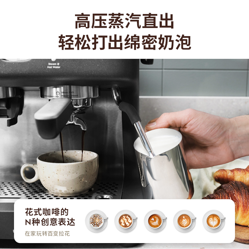 配件:58mm壓粉器,58mm單杯&雙杯粉碗,過(guò)濾手柄,不銹鋼奶缸,清潔配件,硅膠托盤