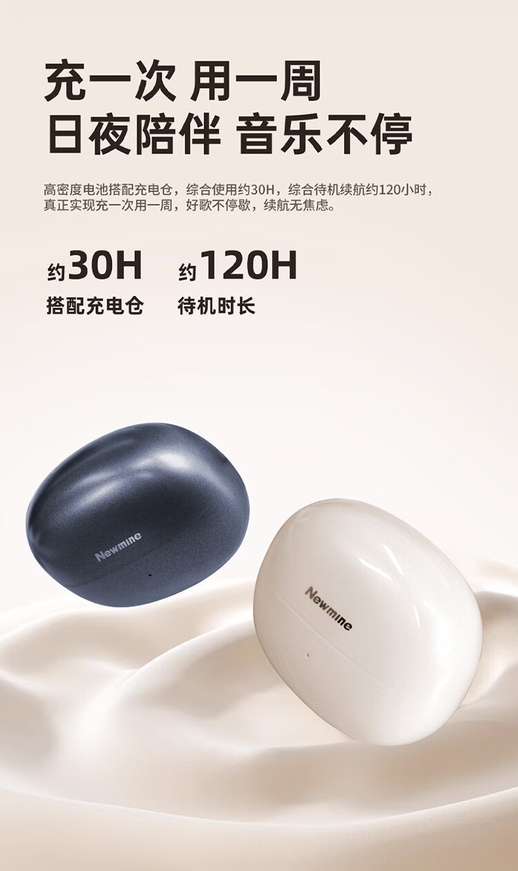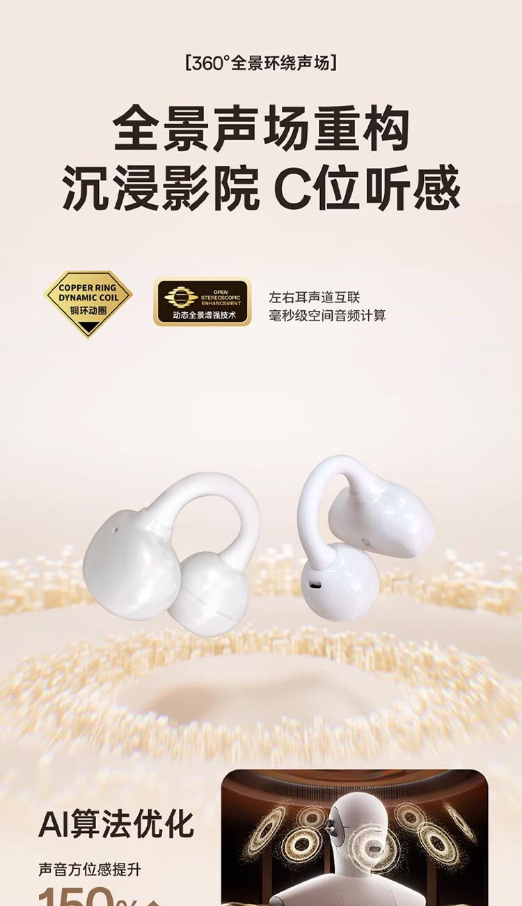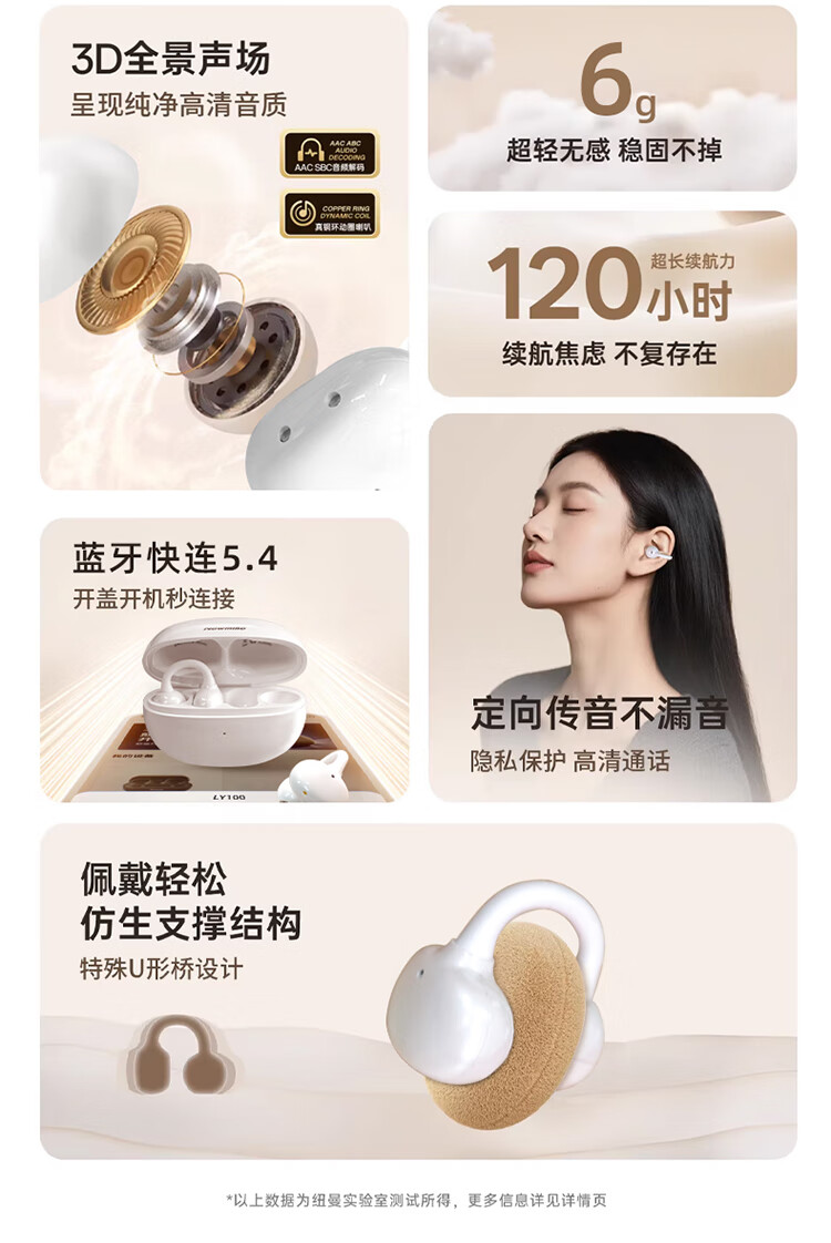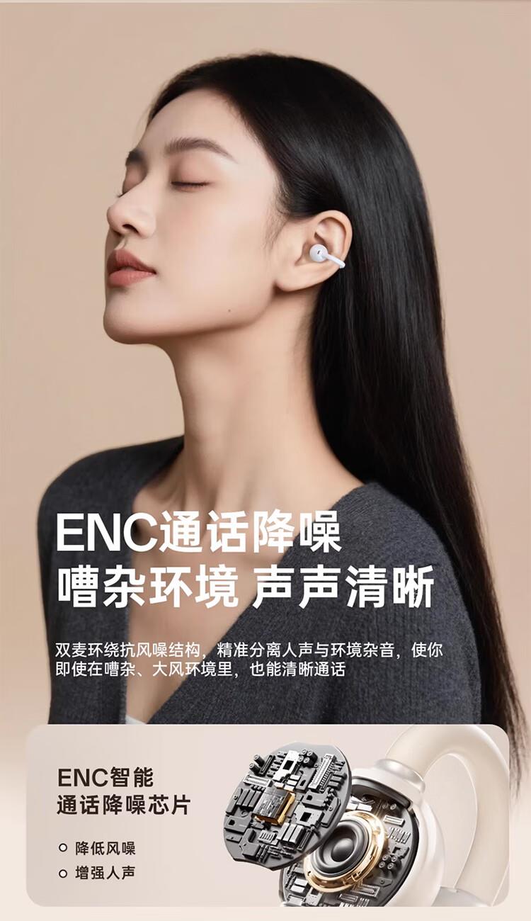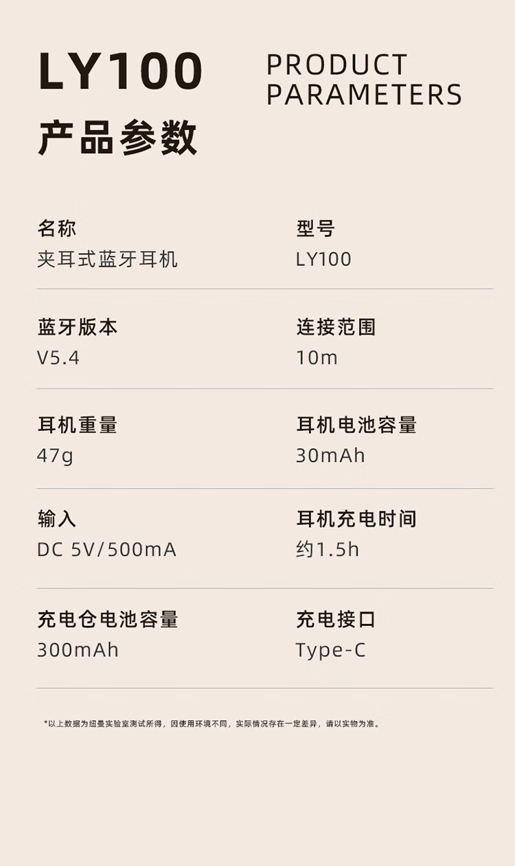 型號:LY100 顏色:白色、錆色 藍牙版本:5.4 頻響范圍:20Hz-20KHz 電池規(guī)格:鋰聚合物電池 充電電流:5V-500mA 充電時間:約1.5小時 音樂時間:約3.5小時(80%音量) 通話時間:約2.5小時 定向傳音技術(shù)、ENC降噪通話、120小時長久續(xù)航,運動級防水,不懼汗水。